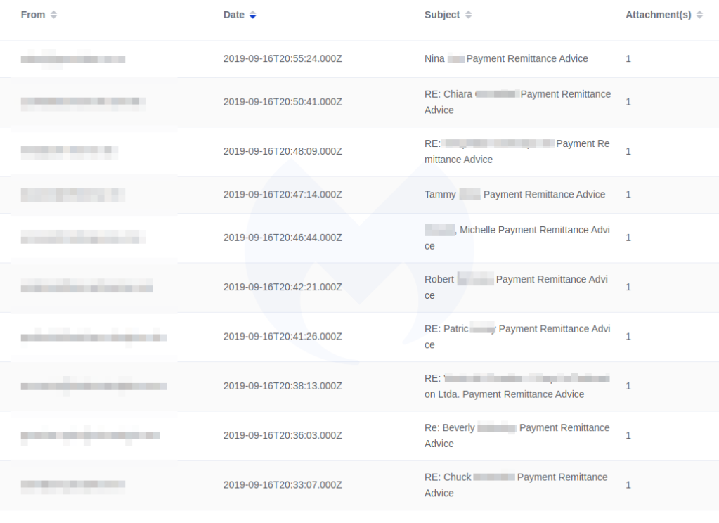 The malicious emails started in the wee hours of Monday morning, with templates spotted in German, Polish, and Italian. Our Threat Intelligence team started seeing phishing emails sent in English as well with the subject line “Payment Remittance Advice.”